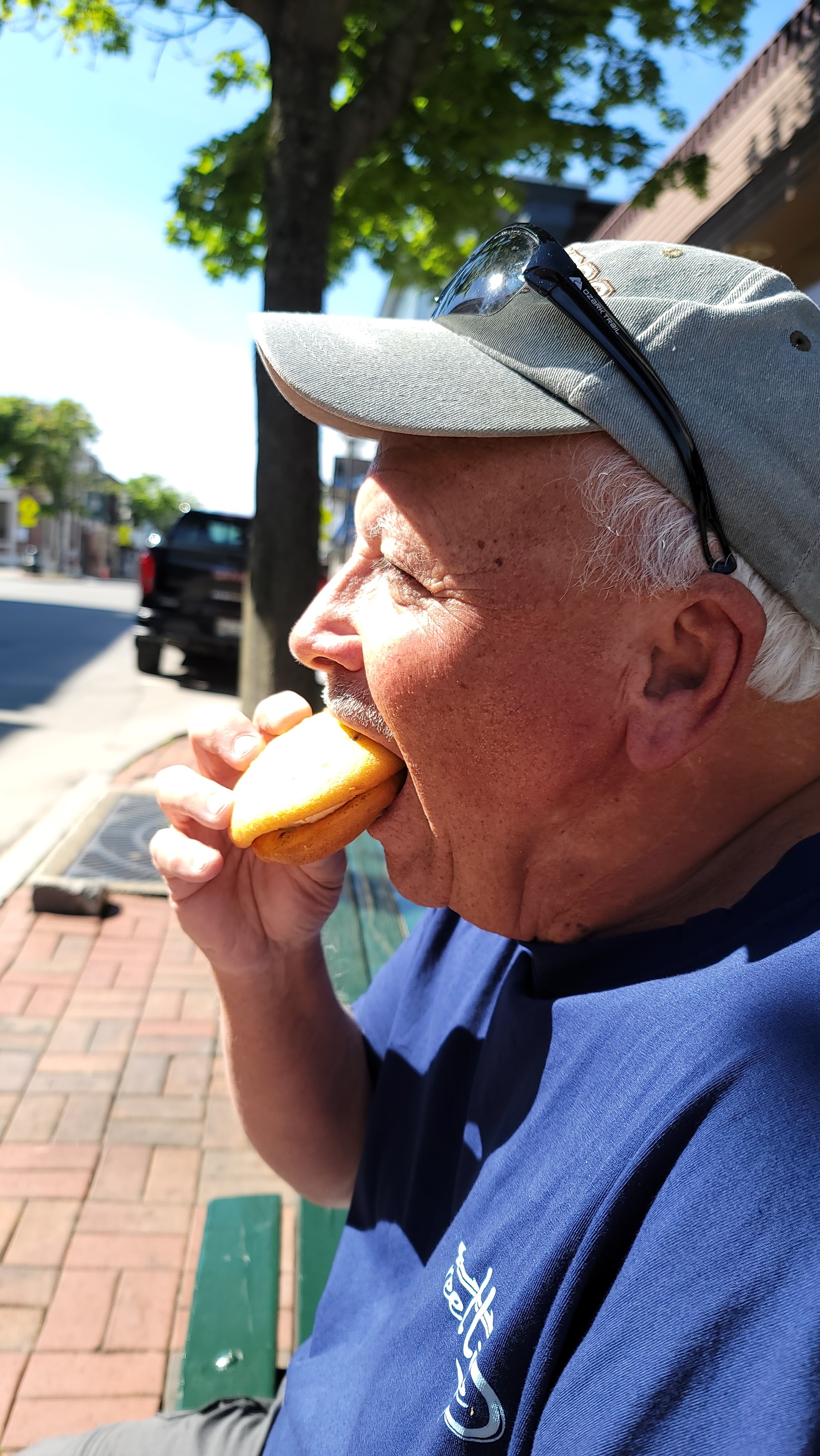 after breakfast in the Pinnacle it was over on the tender at 845am heading into town.. first stop-The Pink Pastry Shop for a Whoppieeeee Pie.. a nice walk.. a stop for an early lunch --lobster rolls.. blueberry pie.. ate outside in the park ..what a pretty day with temps up to73* by noon..