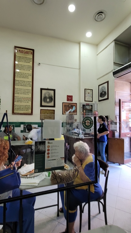 off the ship at 930am... a nice walk around the city as we got to L'Antica Pizzeria da Michele--a favorite place if ours .. a wait to get inas per the usual.. it was featured in the movie 'Eat..Pray..Love' with Julia Roberts as she and a friend ate pizza there... great people on the staff.. showed them the pics from My Blog https://stakeouttoo.blogspot.com/2018/10/naples-italia.html when we were there last in Oct 2018 before Covid.. the same staff were still there.. it was insane.. as they welcomed us with open arms.. wow.. 🥰some more pics of course.. after finishing our Margarita Pizza it was back toward the city marina district ..a stop at DeRosa's another favorite where we bought some Italian pastries--2 boxes full for some of the staff we know onboard.. cannolis.. creampuffs.. and more in the mix.. back onboard by 330pm after walking nearly 10 miles today..a full and busy day