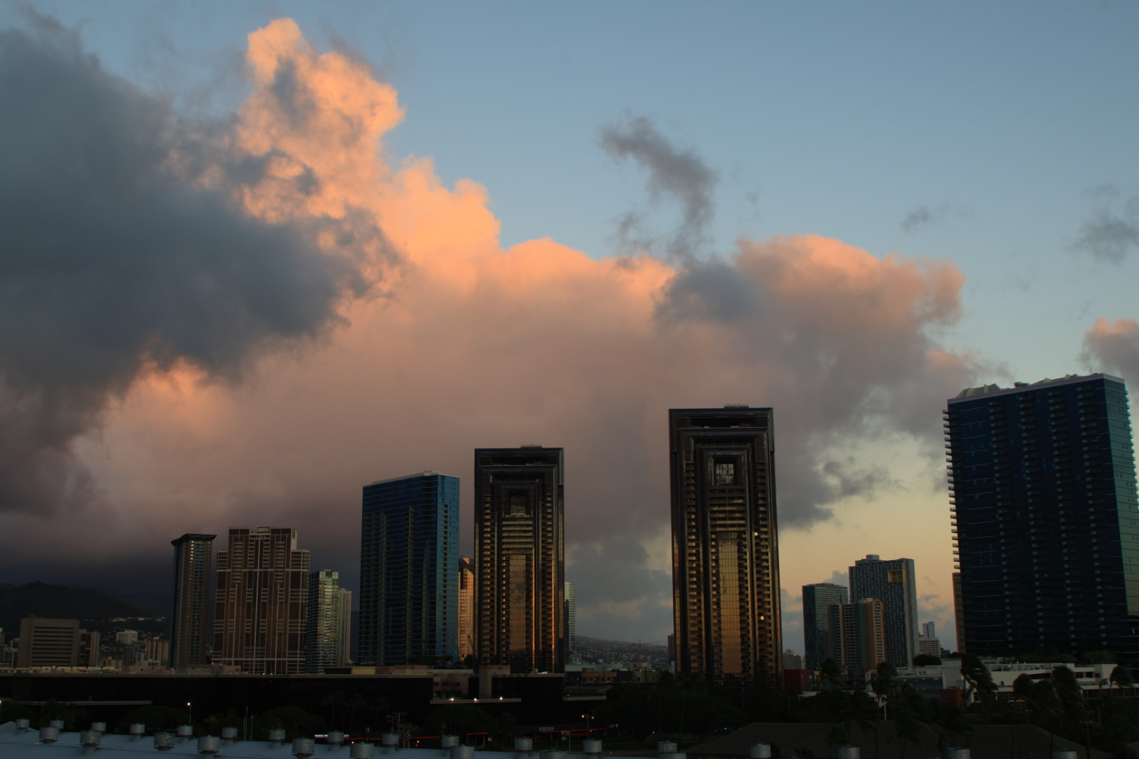 as we made our approach to the port of Honolulu before 7am this morning.. a nice Sunrise over Diamondhead and Waikiki Beach.. we are here overnite once again.. a late afternoon Rainbow ..
